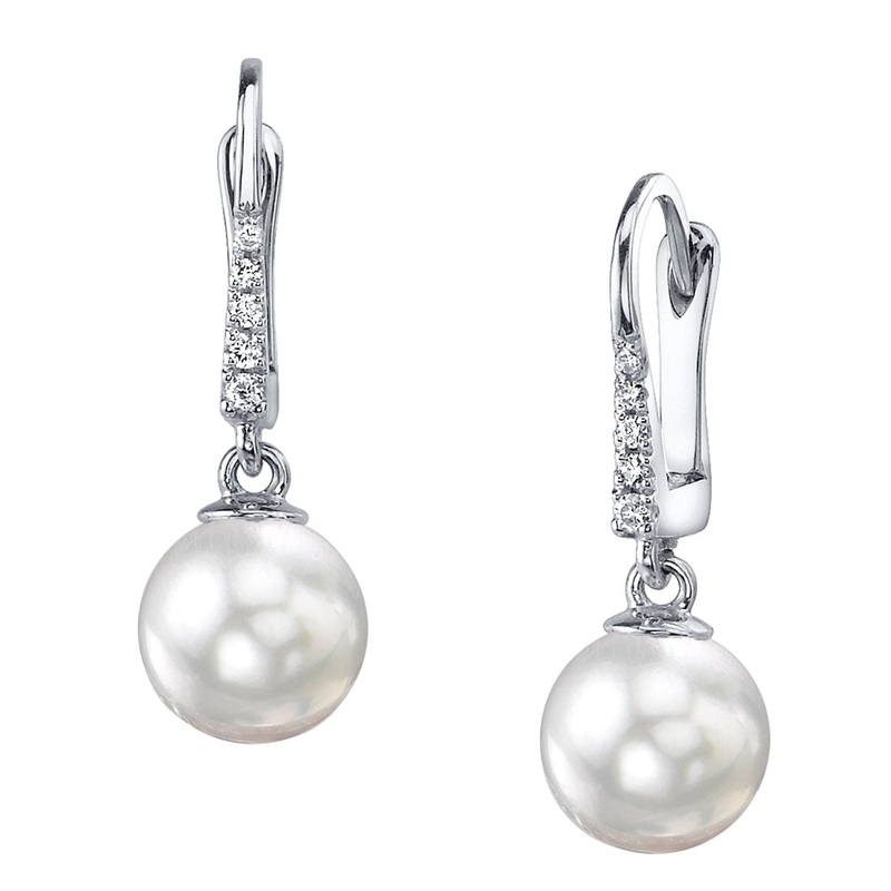 These stunning dangle earrings showcase two exquisite 9mm AAA White South Sea pearls. You’ll appreciate their mirror luster that catches the light beautifully. Each pearl is thoughtfully handpicked to ensure it meets the highest standards. Set in fine 14K gold, the earrings are adorned with .10 carats of SI-quality diamonds, adding just the right amount of sparkle to elevate your look.