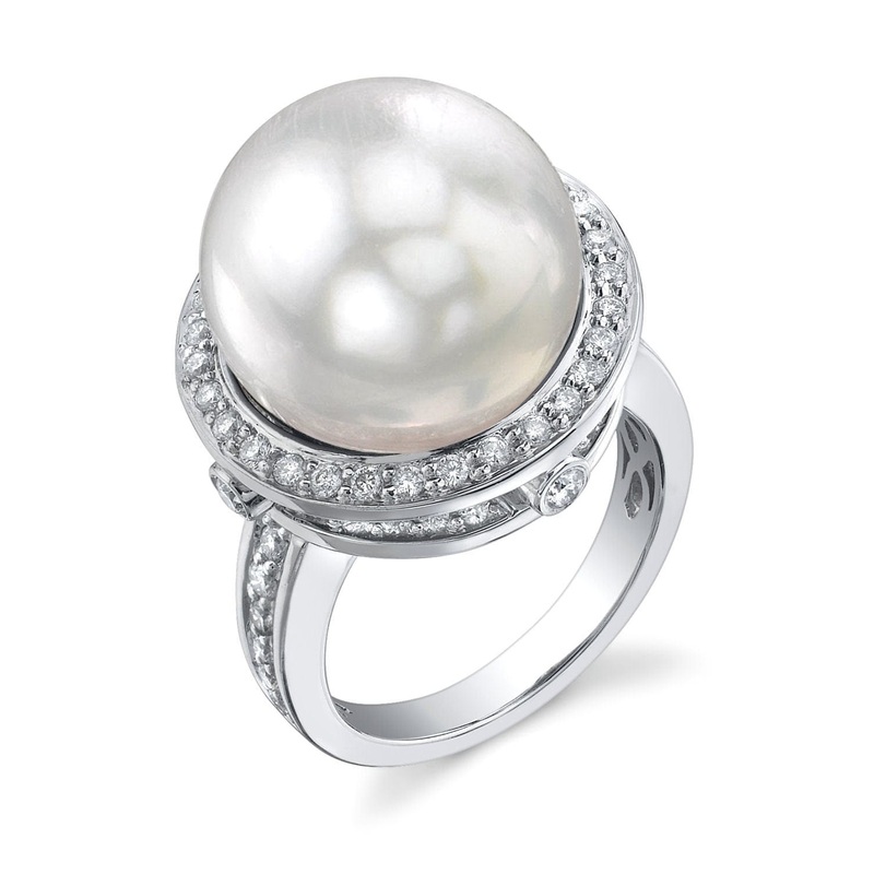 White South Sea Pearl & Diamond Nyx Cocktail Ring