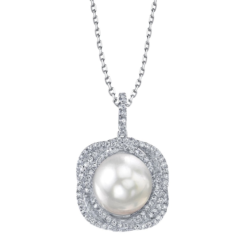 This stunning pendant showcases an 11mm white South Sea pearl. Handpicked for its exceptional luster, it offers a beautiful shine that complements the finest 14K gold. Surrounding the pearl are dazzling diamonds with SI clarity, adding a touch of elegance to your collection. It’s elegantly packaged in a lovely jewelry gift box, perfect for any occasion.