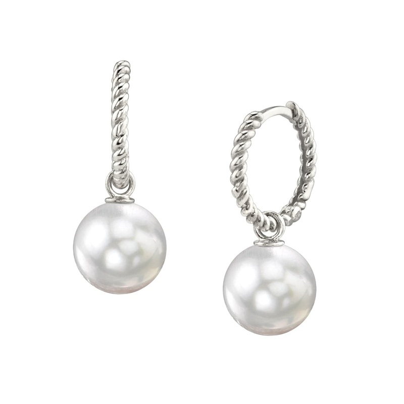 Imagine wearing elegant hoop earrings that feature two 8-9mm AAA quality White South Sea pearls. Each pearl is handpicked for its incredible luster and subtle overtones. Mounted on the finest 14K gold, these earrings hang approximately 1 inch, making them a perfect statement piece for any occasion. Packaged in a beautiful jewelry gift box, they are ready to impress or treat yourself.