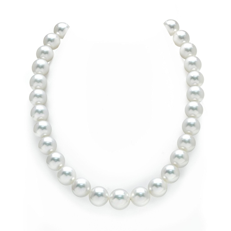 Imagine wearing this stunning piece that features Australian White South Sea pearls, known as the “Queen of Pearls.” These exquisite gems transition smoothly from a 12mm size to a luxurious 14mm. You’re going to appreciate their silvery-white hues and the soft, glowing luster that sets them apart. Each pearl has been hand-selected for its AAA quality, ensuring you receive only the best craftsmanship. You’ll find this necklace not only elevates your style but also feels like a treasure in your collection.