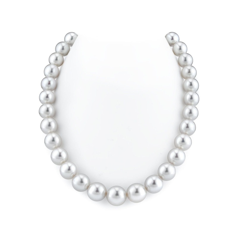 This stunning piece features the “Queen of Pearls,” showcasing the beauty and elegance of Australian White South Sea pearls. These rare gems are known for their silvery-white hues, soft luster, and thickness that speaks to their quality. Graduating from 12mm to an impressive 15mm, each pearl is hand-selected for its exceptional surface quality. You’ll appreciate the exquisite craftsmanship that makes this necklace a true standout in your jewelry collection.