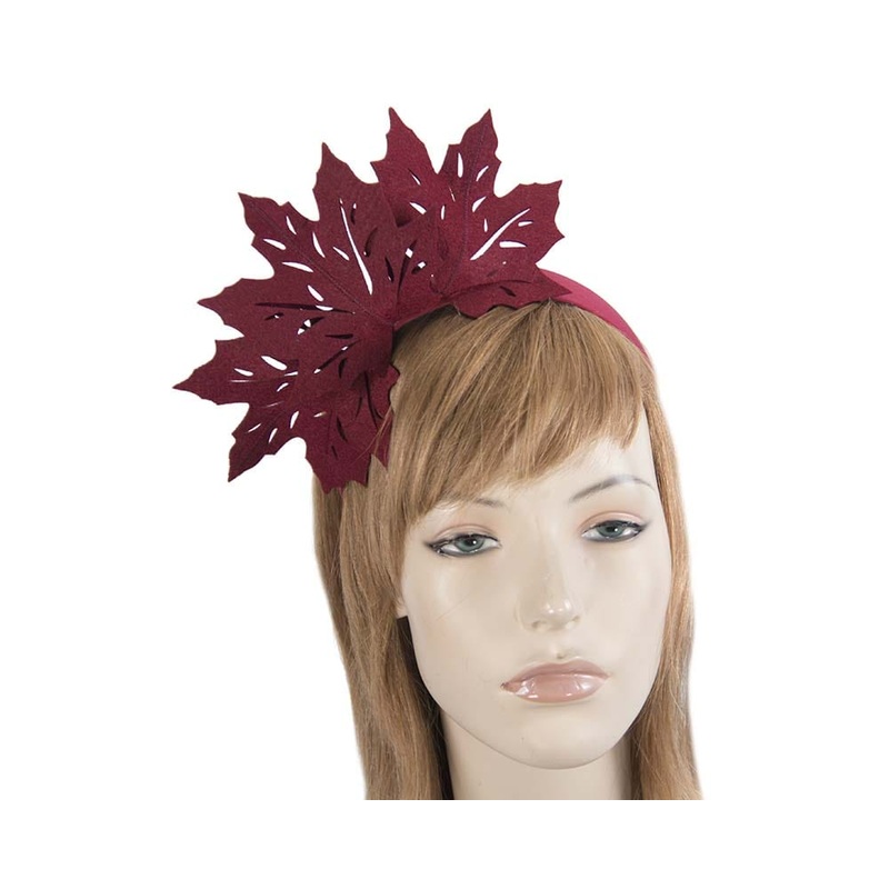 Wine faux felt maple lips formed into elegant racing fascinator. Made in Australia Headband for easy wear Any season fascinator