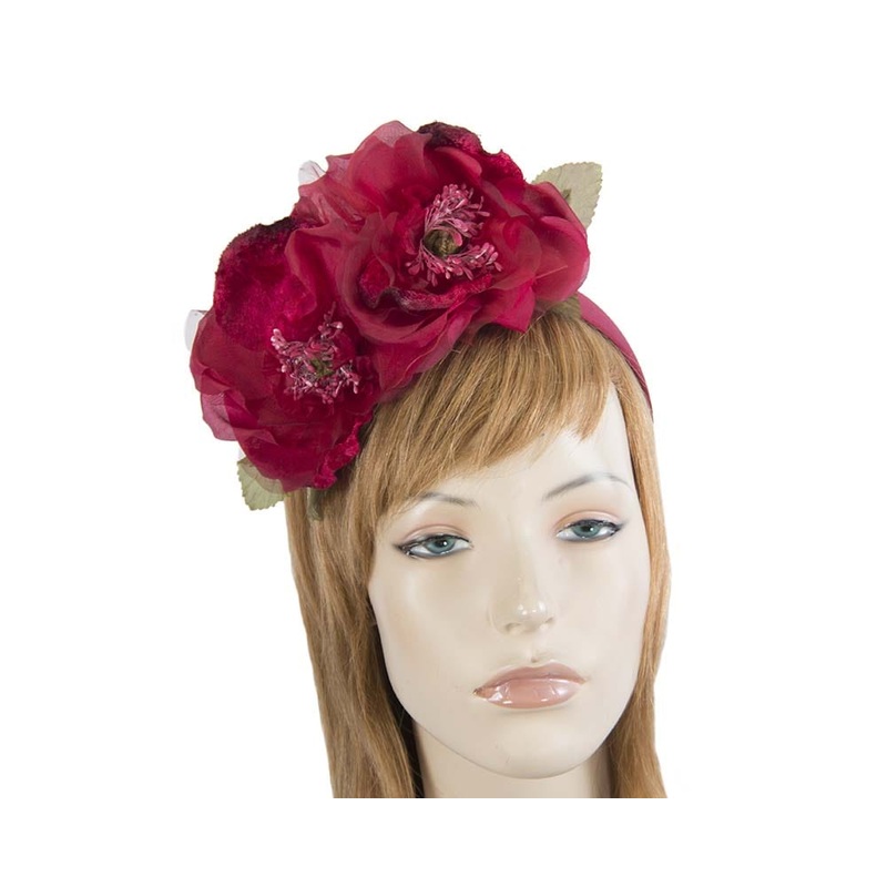 Pair of beautiful silk wine flowers mounted on the headband Made in Australia Renown Max Alexander brand Comfortable headband