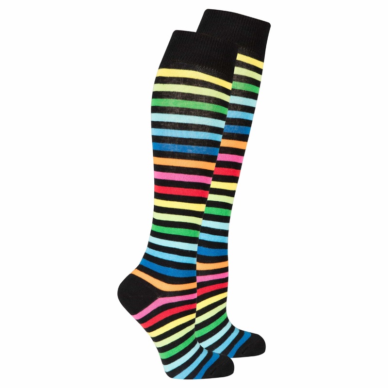 Women's splashy stripe knee-high socks are to add more color, hence more fun to your outfits. Thanks to their stylish look, these women's socks are here for every woman to enjoy. These socks have many colors such as yellow, orange, green, blue, red, pink,