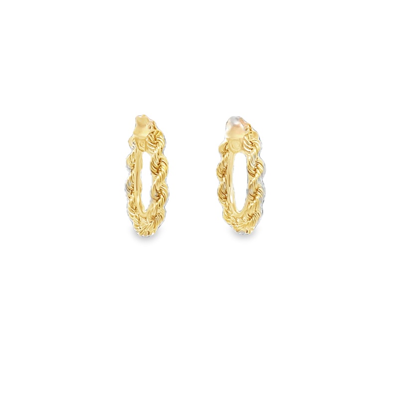 Estate 10 Karat Yellow Gold Polished/Diamond Cut Rope Chain Oval Hoop Earrings, 3mm, Gram Weight: 1.47