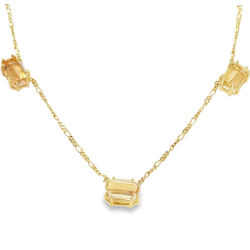 Yellow 14 Karat 1.7mm Figaro Station Necklace Estate Jewelry with 3 Emerald Imperial Topazes