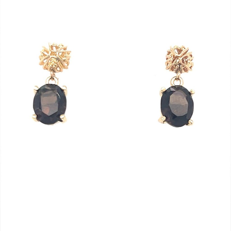 Yellow 14 Karat Dangle Smoky Quartz Stud Earrings Estate Jewelry 2=8.00×6.00mm OVAL Smoky Quartzs Gram Weight: 2.56